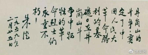 1959年2月25日,朱德为井冈山革命烈士的题词