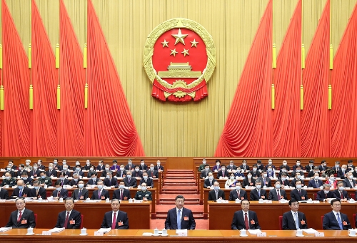 习近平、李克强、汪洋、王沪宁、赵乐际、韩正、王岐山和大会主席团成员在主席台就座。