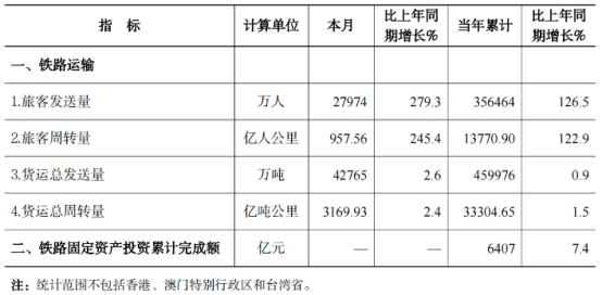 2023年11月份全国铁路主要指标完成情况