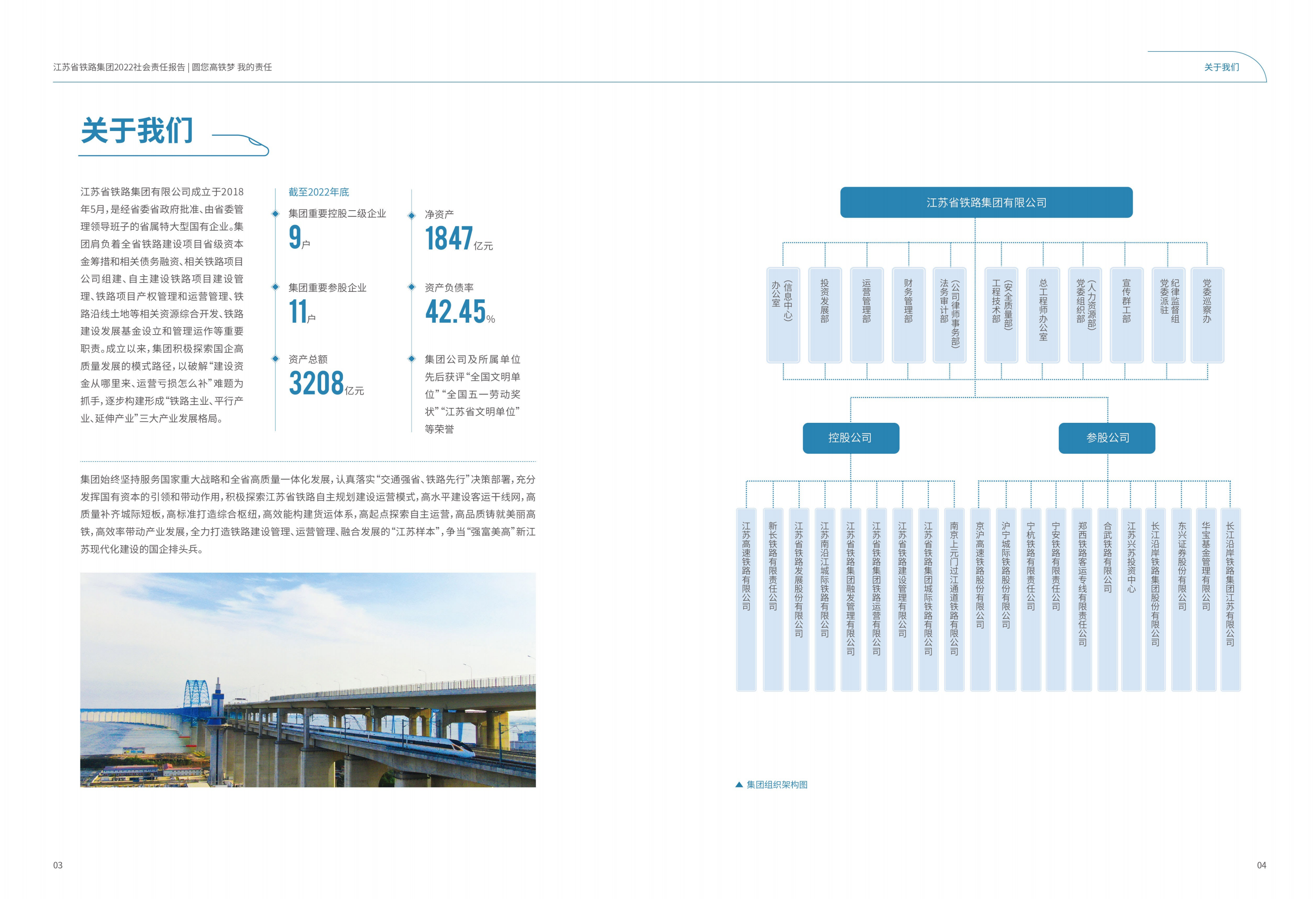 江苏省铁路集团有限公司(简称“铁路集团”)成立于2018年5月,是经省委省政府批准、由省委管理领导班子的省属特大型国有企业。铁路集团注册资本1000亿元,是全国注册资本规模最大的省属铁路企业,截至2022年4月底,铁路集团控股二级企业8户,拥有重要参股企业11户,资产总额2974亿元,净资产1792亿元,集团系统先后获评“全国文明单位”“全国五一劳...[了解详细]