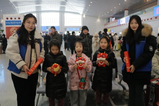 春运期间,管内各站根据旅客不同需求,推出重点旅客预约服务、保障老年人群服务、遗失物品查找服务、“小候鸟”预约护送服务等,让旅客出行体验更美好。在高铁公司联合管内各站组织开展的“守护‘小候鸟’”暖心贴心服务活动中,青年志愿者与小旅客暖心互动,送上糖果、福袋等新春礼物和祝福,助力“小候鸟”们春运平安有序温馨出行。