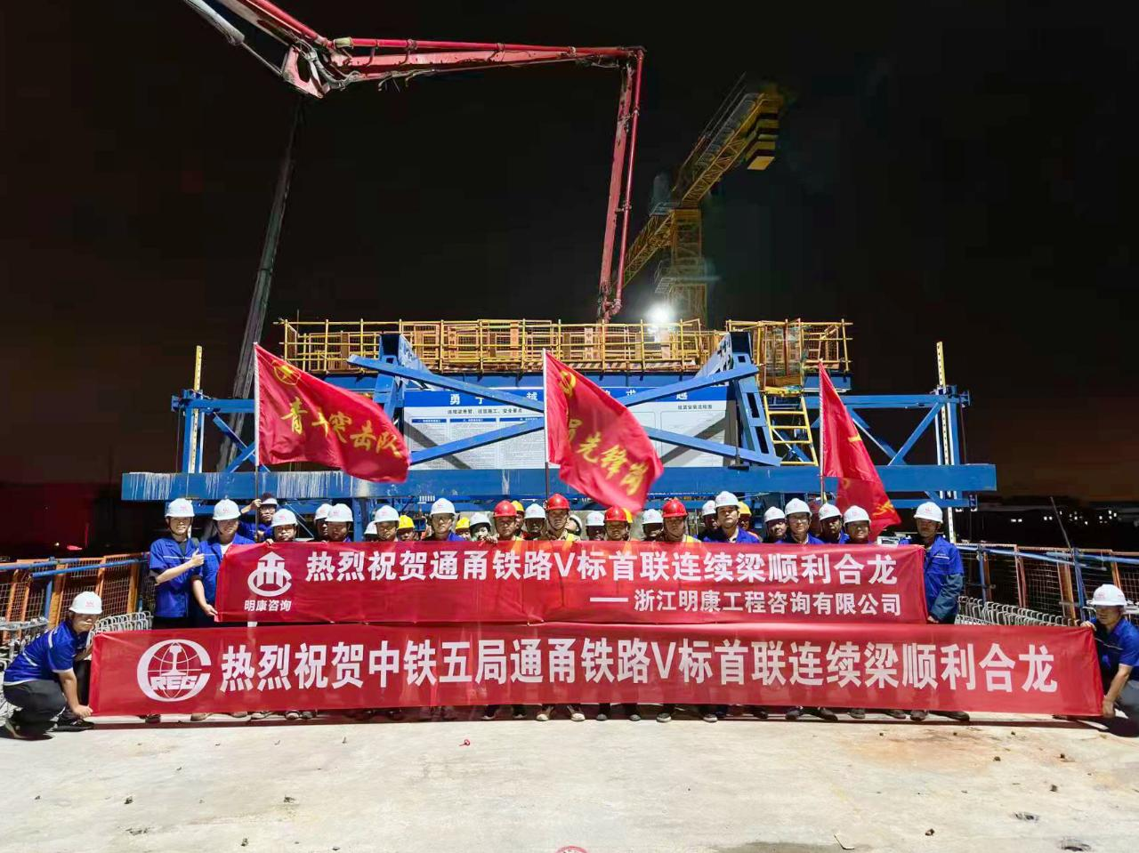 近日,随着最后一方混凝土缓缓注入合龙口,通苏嘉甬高铁张家港至常熟西特大桥主跨48米连续梁顺利实现合龙,为后续箱梁架设及桥面系施工奠定了坚实基础。
