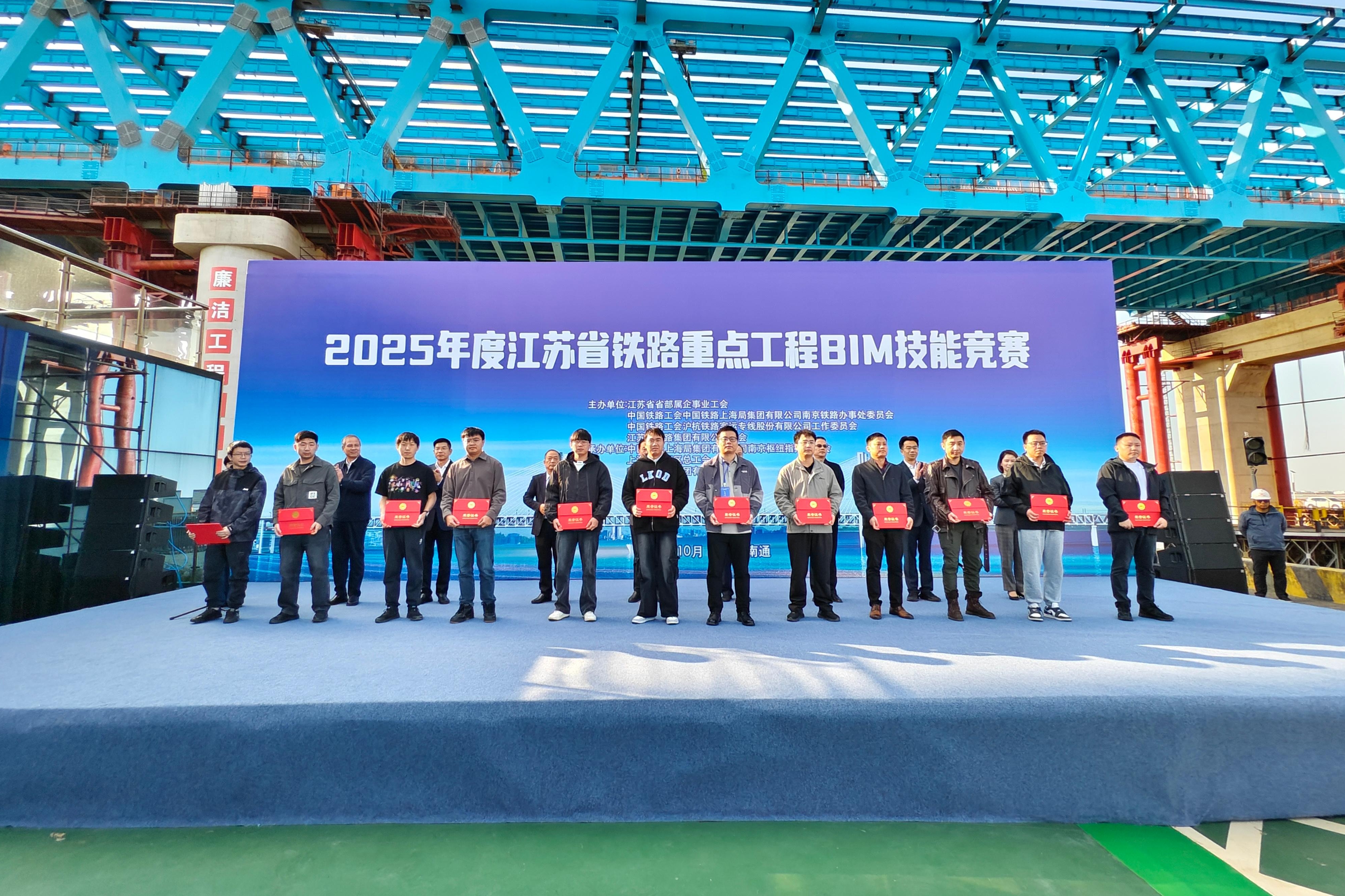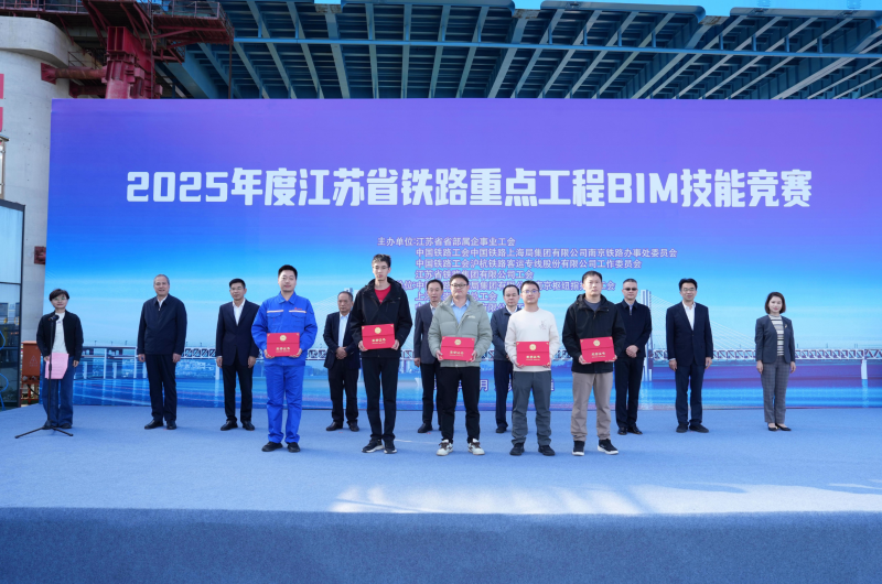 10月27日至28日,2025年度江苏省铁路重点工程BIM技能竞赛在北沿江高铁站前5标举行。来自盐宜、宁淮等全省铁路重点工程参建单位的61名选手,经过激烈角逐,最终评选出一等奖3名,二等奖5名,三等奖12名。据悉,这是江苏铁路行业首次举办的BIM技能竞赛,旨在通过竞赛推动信息化技术与工程建造技术的深度融合,加快打造高质量的“轨道上的江苏”。