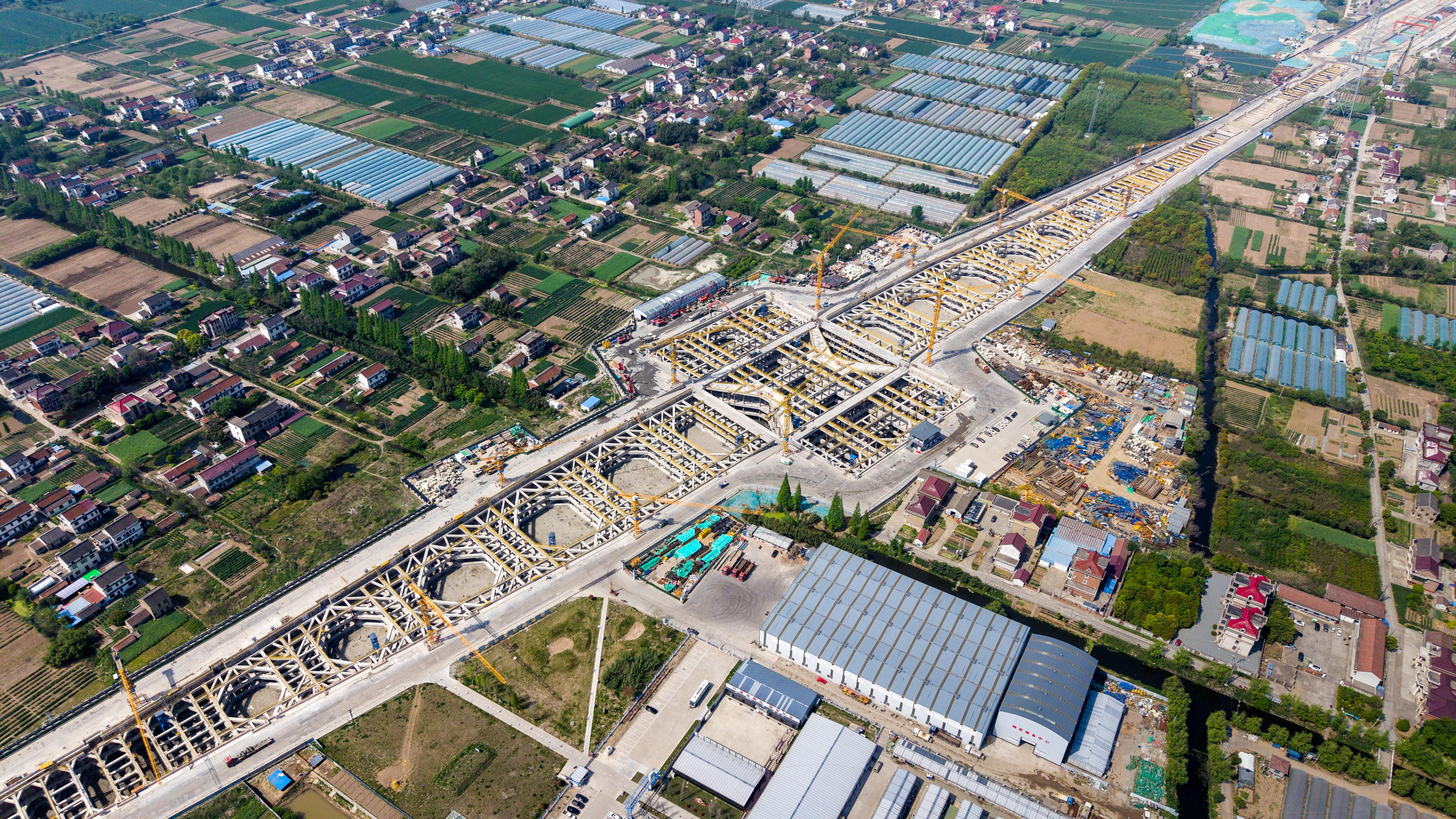 据了解,海门北站采用两台六线站场布局,地下一层为换乘通道,地下二层为高铁站台层,地下三层预留地方城际轨道层。车站北侧衔接规划中的南通新机场,未来将成为集高铁、航空、城轨、地铁、公交、出租车等多种交通方式于一体的大型综合交通枢纽。目前,海门北站总体工程已完成超过80%,核心区基坑底板实现“封底”,意味着海门北站主体结构进入快速推进阶段,后续将全面展开墙板柱施工,预计2026年3月底完成主体结构施工。