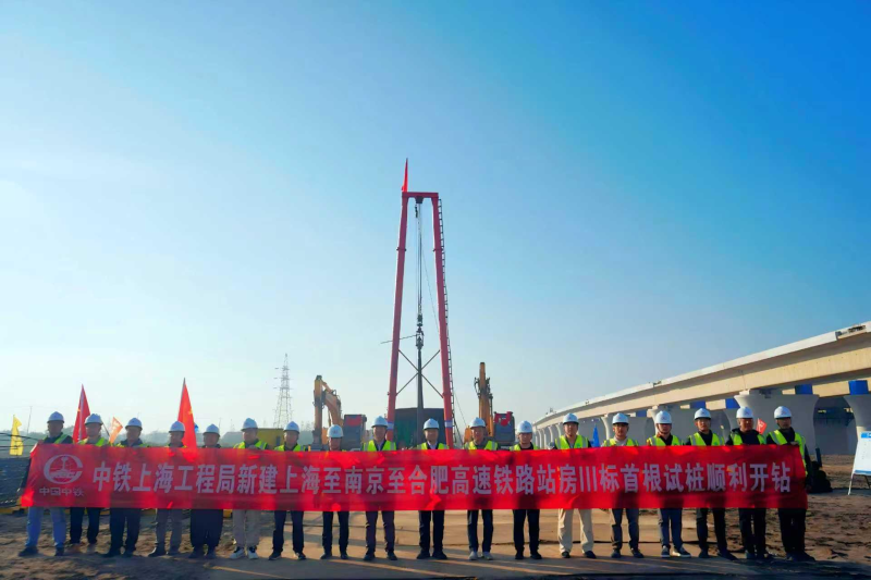 近日,北沿江高铁启东西站站房工程首根试桩顺利开钻,站房主体工程建设正式启动。
