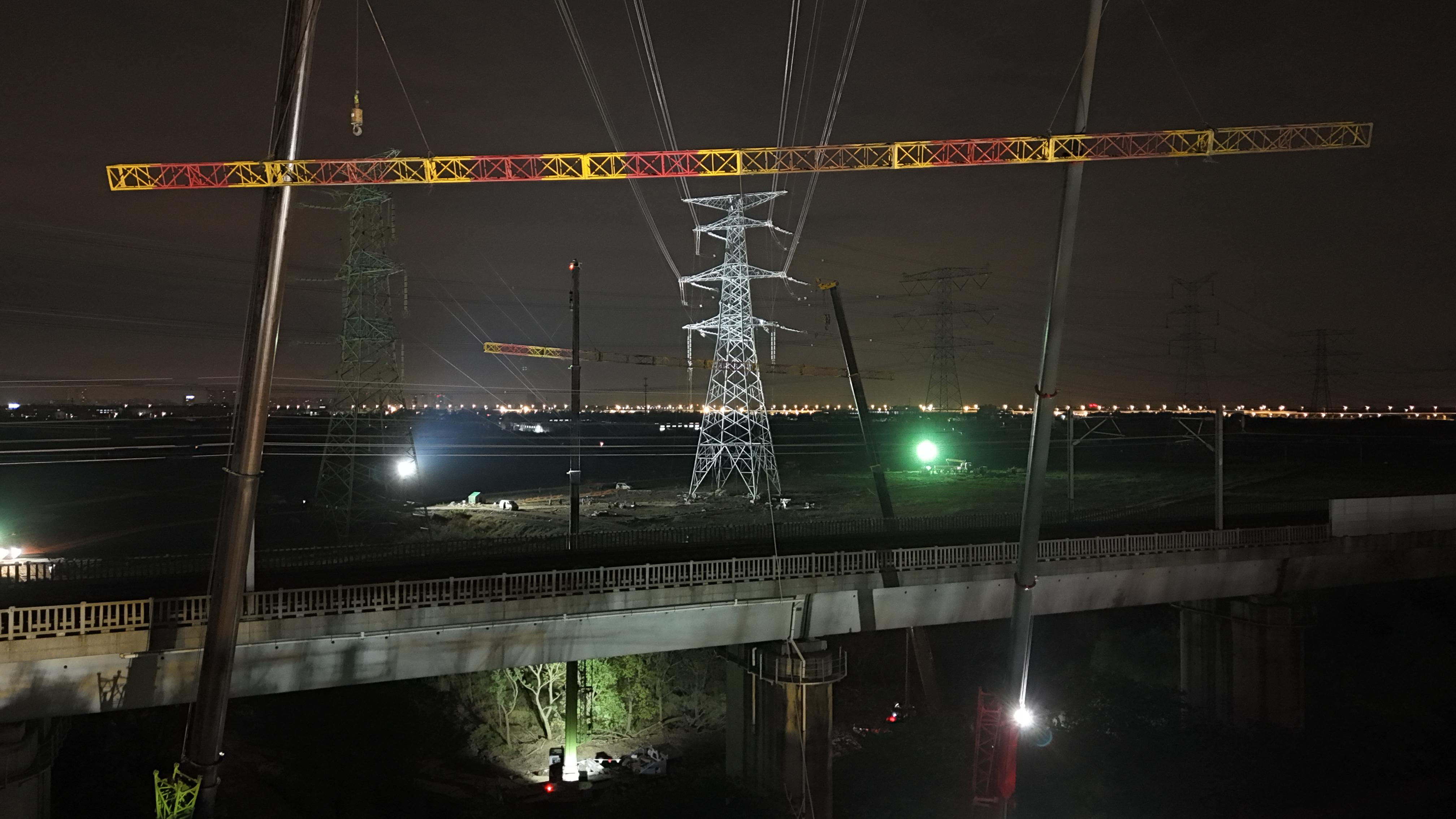 此项工程位于无锡市惠山区,是盐泰锡常宜铁路全线首条完成迁改的超高压电力线路迁改工程。线路为双回路设置,新建铁塔4基,拆除铁塔3基。该线路电压等级高,涉及既有设施和产权单位多、停电影响范围广,协调难度大。迁改施工时须利用新长铁路、京沪高铁凌晨的“天窗”期施工,工程量大,施工安全与精度要求极高。