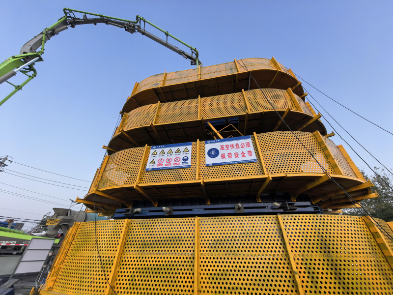 为确保施工任务高质量完成,项目部针对坡度控制、混凝土温控等关键难点开展专项研讨,确定了“分层浇筑、精准振捣、实时监测”的措施。施工中,采用定制化模板体系配合激光测距仪、全站仪实时监测,确保结构尺寸误差控制在毫米级;同时启用“智慧工地”管理系统,对施工进度、质量检测、安全隐患等数据实时管控,全程保障施工安全与质量。