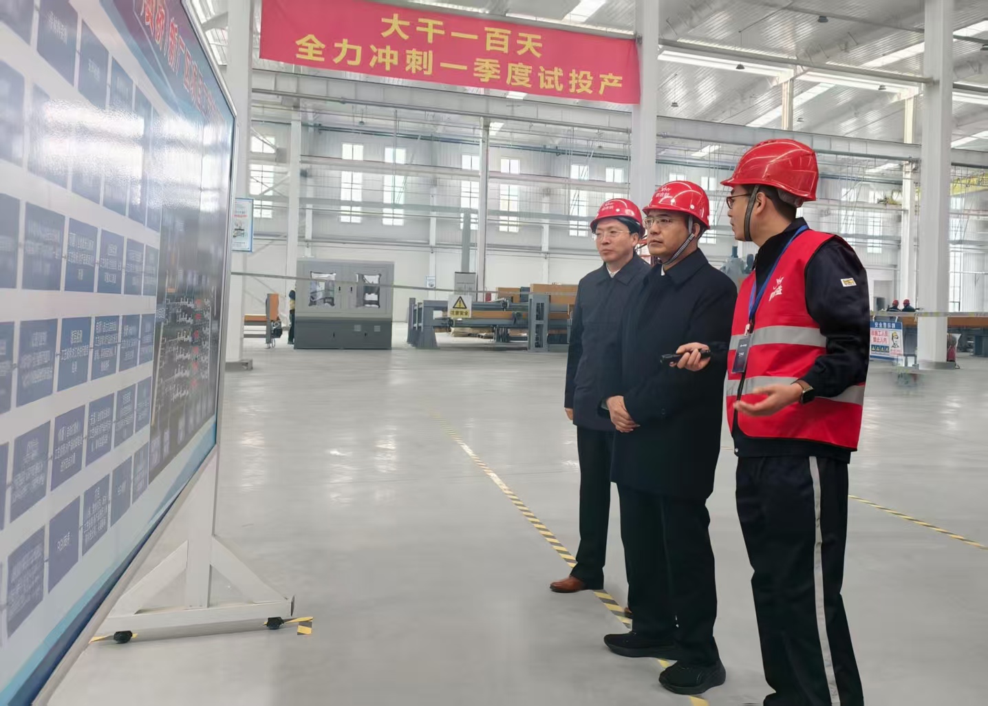 在新合益黄桥厂区,马腾飞在厂房内现场查看了设备安装调试情况,听取生产线工艺布局、智能化配置等方面情况介绍,对新合益公司一年来在新厂区建设、企业经营管理等方面的工作给予肯定,强调铁发公司要带领新合益公司紧盯转板上市目标,进一步振奋精神、鼓足干劲,打好“三大攻坚战”。一要打好生产攻坚战,立足“盘活存量、做优增量”,拿出过硬措施,全力推动黄桥厂区提前投产、阳山厂区挖潜上量,力促产量加快提升;提前布局和研发新产品,拓展营收增长点。二要打好销售攻坚战,强化市场意识,建强营销队伍,健全营销体系,大力开拓市场,持续推动营收增长。三要打好管理攻坚战,坚定行业领军企业定位,认真谋划“十五五”发展举措;坚持管理在一线,发挥团队优势,带好队伍,不断提升管理水平。