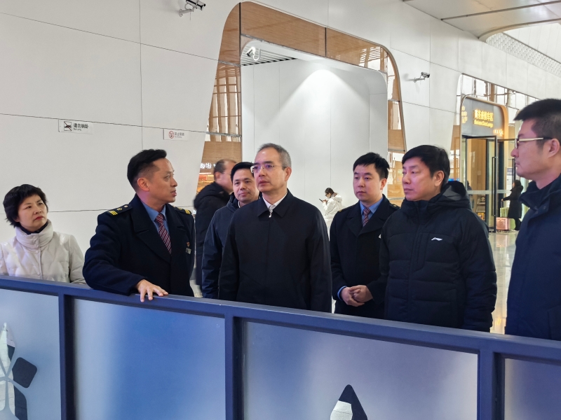 在扬州东站,马腾飞在候车区实地查看了客运组织情况,并检查了客运安全生产措施落实情况,与客运站负责人交流了假日客运服务保障工作,慰问了客运站一线职工,并对有关重点工作进行了强调,一要全力做好元旦、春节等假日客流高峰应对工作,精心做好客运服务,全面落实安全生产措施,保障旅客平安顺畅出行。二要抢抓扩大服务消费的政策利好,精准对接文旅活动、体育赛事带来的增量客流,丰富客运产品供给,更好满足出行需求。三要积极会同路方共同做好客运站停车场、桥下空间的开发利用,盘活存量资产,拓展增收路径,提升经营效益。