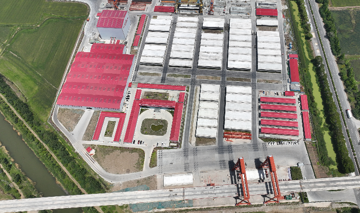 据城际公司工程管理部负责人介绍,淮安梁场总占地面积198亩,承担着标段内1075孔简支梁预制任务,是宁淮城际铁路全线规模最大的预制梁场。场内配置2台180型拌和机组,设有10个制梁台座和52个存梁台座,最大存梁能力达104榀。