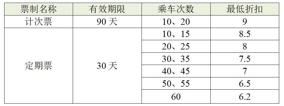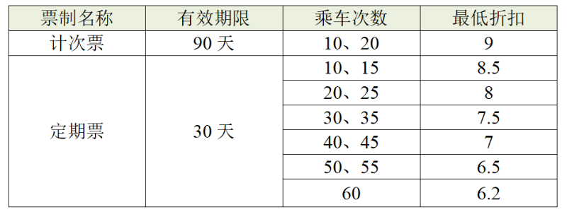 表1 新型票制产品票价折扣一览表