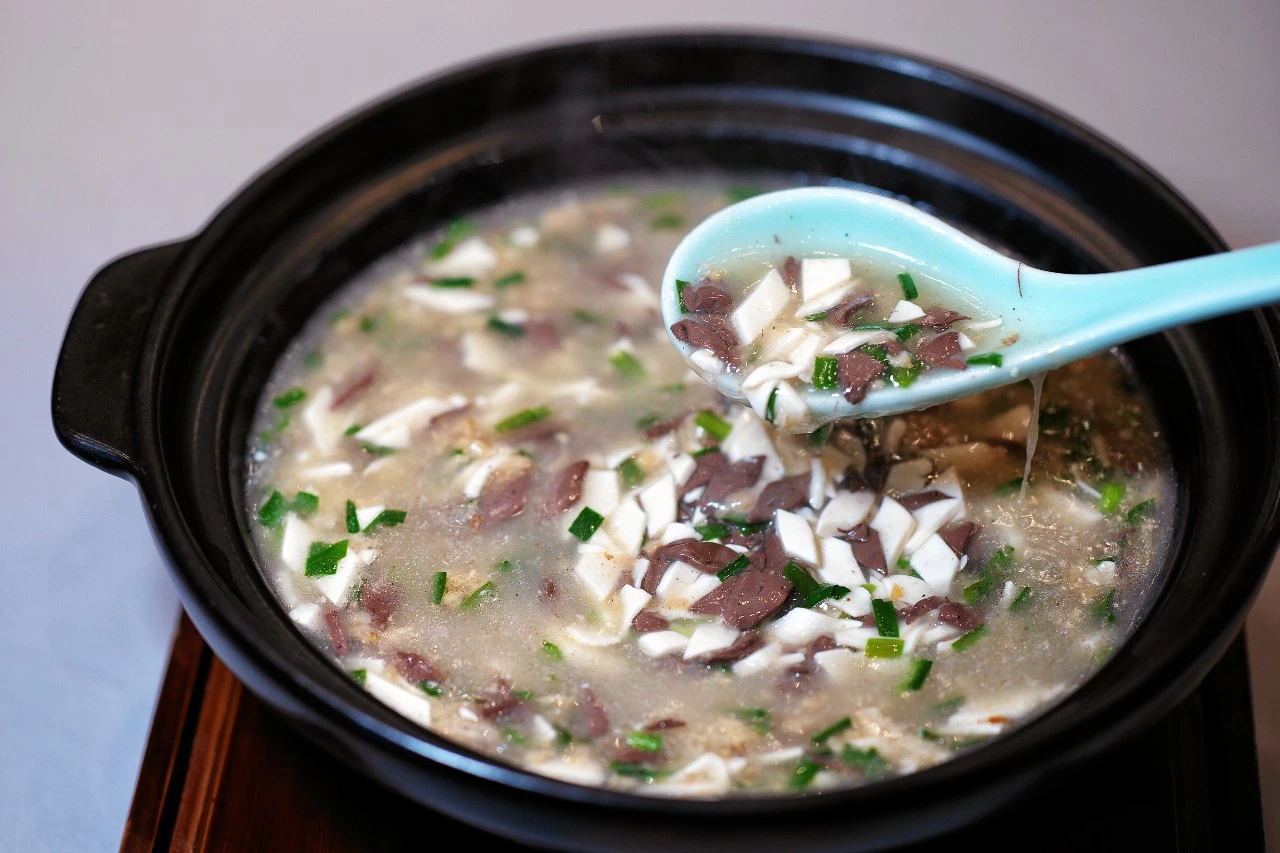 四方食事,不过一碗人间烟火。在南门大街特色美食区,热气腾腾的“汪豆腐”成为人们必点的佳肴。“汪豆腐”由豆腐与鹅血经过细致焯水,搭配猪油渣、生姜片爆香后勾芡而成,软嫩滑口。