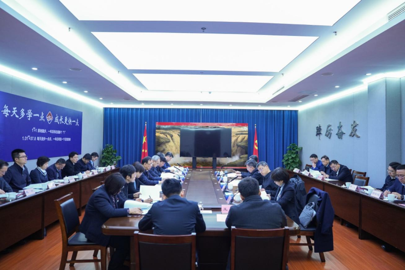 省铁路集团党委书记、董事长丁建奇汇报工作情况。集团领导班子成员、相关部室企业负责人参加调研座谈。