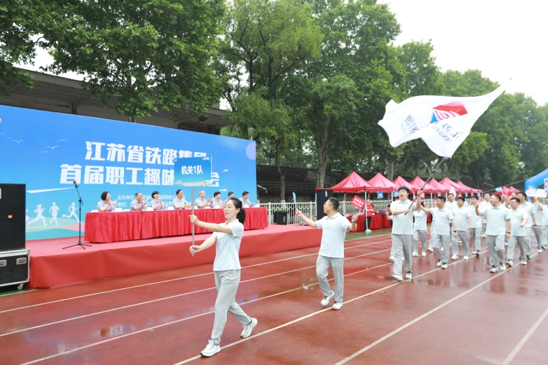 开幕式上,庄严的国旗方阵、司旗方阵率先亮相,护旗手们昂首挺胸、步伐铿锵。随后,10个代表队方阵喊着嘹亮的口号依次入场,展现出江苏铁军团结拼搏、昂扬向上的精神风貌。集团舞蹈俱乐部还在现场表演了暖场舞和开场舞。