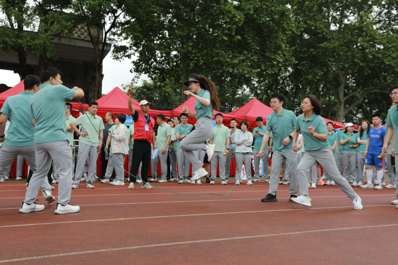 本次运动会趣味性、协同性和竞技性并存,设置了3公里健康跑和趣味比赛系列项目。其中,趣味比赛系列项目包含飞盘接力掷准、运转乾坤、旱地龙舟、2分钟跳长绳、铁环接力、拔河6个项目。飞盘接力掷准考验精准与协作,运转乾坤比拼团队力量与速度,旱地龙舟、2分钟跳长绳、铁环接力充满欢乐与挑战,拔河比赛更是将现场气氛推向高潮。绿茵场上,参赛选手们勠力同心、奋勇争先;赛场旁,观众们助威声、欢呼声此起彼伏,热烈氛围感染着每一个人。