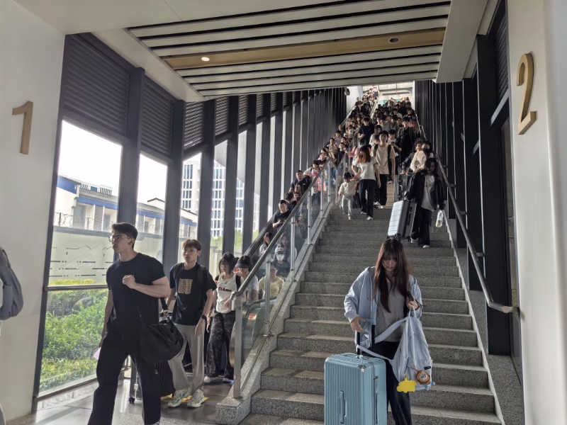 自2025年1月5日全国铁路调图后,武进站日开行列车车次从51趟增至65趟,增幅达27.4%,乘客可经武进站直达北京、上海、南京、武汉、成都、广州等热门城市。音乐节期间,来自上海的乐迷小李感慨:“从上海乘坐高铁直达武进站,下车后接驳大巴直接送到音乐节现场,太方便了!”