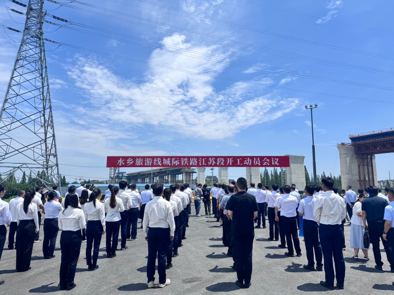 6月30日上午,水乡旅游线城际铁路江苏段开工动员会议在苏州吴江区举行,省委常委、常务副省长马欣宣布开工。省政府副秘书长崔巍,省交通运输厅厅长吴永宏,长三角生态绿色一体化发展示范区执委会副主任、上海市发展改革委副主任卢刚,集团总经理马腾飞,苏州市委常委、副市长顾海东出席活动。会议由苏州市副市长施嘉泓主持。省、苏州市及集团相关部门及参建单位代表参加活动。