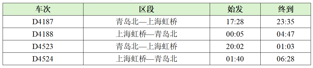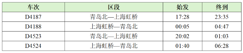 为满足旅客多样化的出行需求,高铁公司控股铁路在实行高峰线运行图的基础上,增开青岛北~上海虹桥D4187/D4188次、D4523/D4524次2对临客。这2对临客经青盐线、盐通高铁运行,途经连云港、日照和青岛等海滨城市,其中D4188次、D4524次为夜间动车组,为旅客提供“夕发朝至”的避暑海滨游便利。铁路部门还将依据车票预售情况,精准实施“一日一图”,通过动车组重联、长编组运行等方式灵活补充热门方向运能。