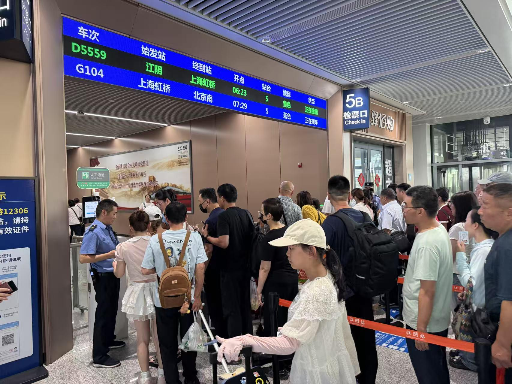 清晨6点,江阴站候车室已人潮涌动,200余名旅客早早汇聚在检票闸机前翘首以盼。6点23 分,随着发车指令下达,开往上海虹桥站的D5559次列车缓缓启动,正式开启新运行图下的首趟旅程。