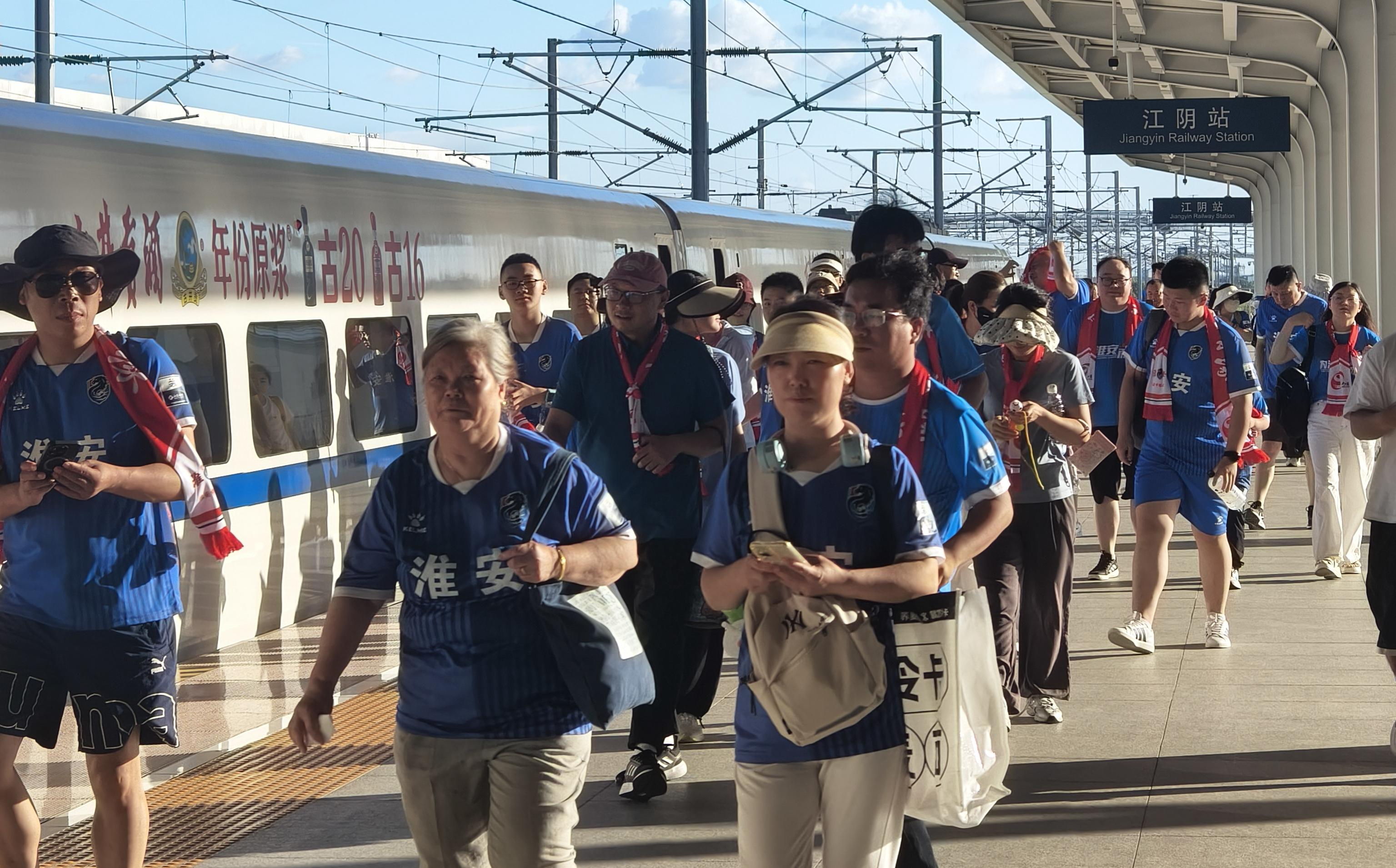 以沪宁沿江高铁江阴站为例,在7月20日晚,苏超第七轮无锡对战淮安的比赛在无锡江阴市体育中心进行,为满足淮安球迷现场观战需要,铁路部门针对淮安与江阴之间无直达列车的现状,临时增开“淮安东~江阴”直达球迷专列,并联合地方交通部门安排大巴免费接驳,省铁路集团南沿江公司组织志愿者在车站迎送球迷旅客并提供免费饮用水补给。当日,江阴站旅客到发量达到2.1万人次,较平时周末增加2000余人次,增长10%以上。