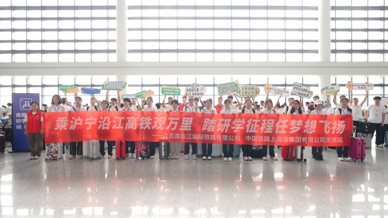 8月11日,D5566次研学专列为707名江苏省南菁高级中学新生开启了“中科大”深度研学之旅。南沿江公司联动无锡站、江阴站,开辟专属候车区、安排专人核验团体票、设置临时供水点……从进站到登车,全程高效顺畅。